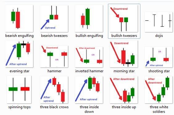 Trend turun: Pola kandil Evening Star, kandil Gravestones Doji, kandil Pin bar, dll.