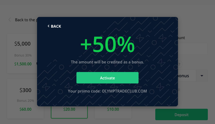 Aktifkan kode promosi Olymp Trade pada akun Anda